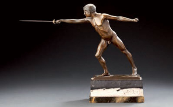 L’assaut Sculpture en bronze signée sur la terrasse. Important socle en marbre. Hauteur : 37 cm 1 000/1 500 € Adjugé 1 600 €