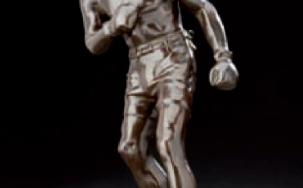 Georges Carpentier Exceptionnelle sculpture en bronze à patine brune signée sur la terrasse, le nom du boxeur gravé. Patine superbe Hauteur : 40 cm 2...
